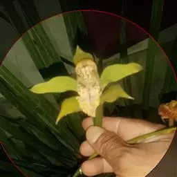 小金蝶兰(O.varicosum),花黄绿色,花径3厘米。