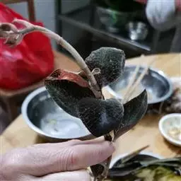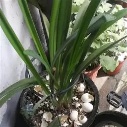 当中苗经过5~6个月后,长至6~8个假鳞茎,根系将木炭块很好包住,此时应为中苗换盆。