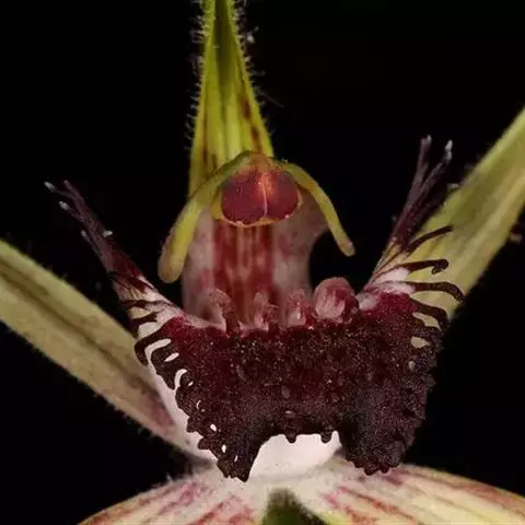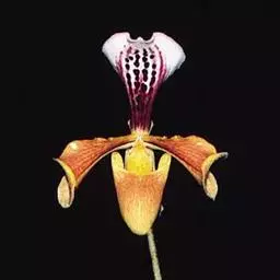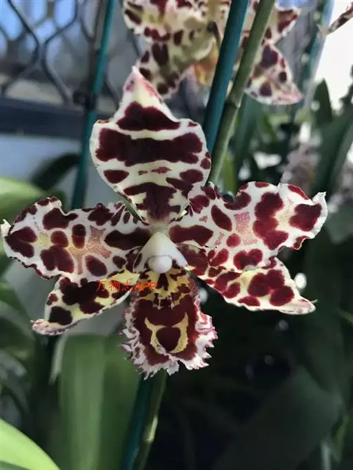 皱状文心兰(O.Crispum),花大,皱瓣,花径8厘米,花瓣褐色具金黄色中心。