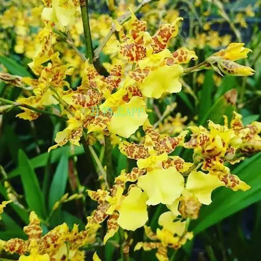 豹斑文心兰(O.Pardinum),花鲜黄色,具棕色斑纹。