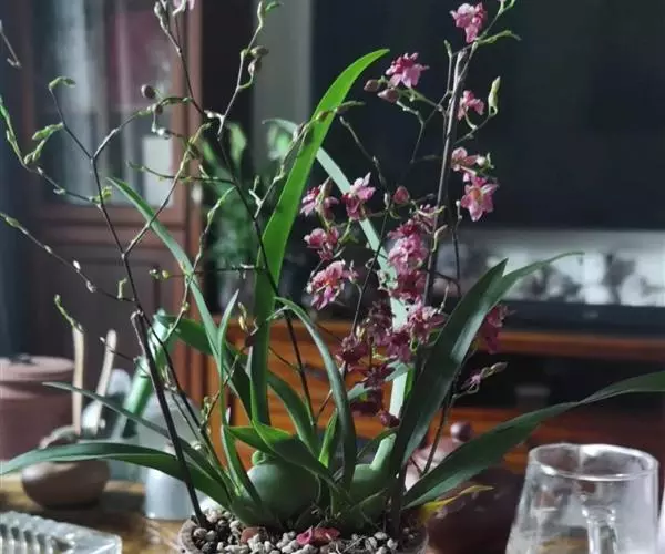 文心兰为复茎类洋兰,成株后都会长出子株,待子株有假鳞茎时剪离母株即可。将带2个芽的假鳞茎剪下,直接栽植于水苔的盆内,保持较高的空气湿度,很快恢复萌新芽和长新根。分株繁殖一般在开花后或春秋季进行,常在春季新芽萌发前结合换盆进行分株最好。 一枝文心兰