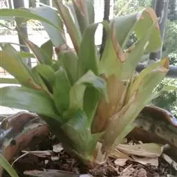 换盆:种植4个月后便需换盆,换盆时,先在盆底放一层介质,再把凤梨植株从小盆中连土取出,放在盆中央,周围放入介质,轻压以确保植株直立,同样介质不宜压得太紧,以确保良好的透气性。种植深度以3至4厘米为宜。换盆后立即浇透清水,一个月后便可浇肥。