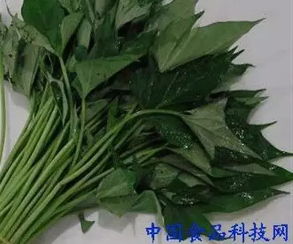 红薯叶,即秋天红薯成熟后地上秧茎顶端的嫩叶。测试表明,每百克鲜红薯叶含蛋白质2.28克、脂肪0.2克、糖4.1克、矿物质钾16毫克、铁2.3毫克、磷34毫克、胡萝卜素6.42毫克、维生素C0.32毫克。将其与常见的蔬菜比较,矿物质与维生素的含量均属上乘,胡萝卜素含量甚至高过胡萝卜。因此,亚洲蔬菜研究中心已将红薯叶列为高营养蔬菜品种,称其为“蔬菜皇后”。在欧美、日本、香港等地掀起一股“红薯叶热”。用红薯叶制作的食品,甚至摆上了酒店、饭馆的餐桌。在我国,城市超市里见不到有红薯叶出售,农民收获红薯后将红薯叶,连同茎一起丢在地里,或用作喂牲畜的饲料,这是非常可惜的。