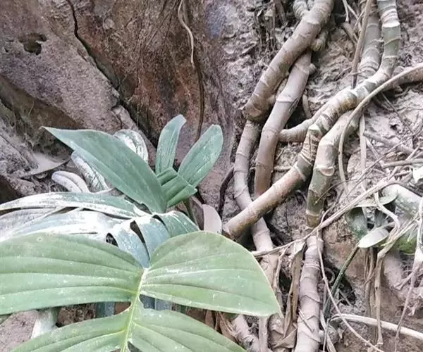 百足藤,附生藤本,长1-20m。分枝较功,营养枝具棱,常曲折,节间长0.5-1.5cm,节上气生根长1-2cm,贴附于树上;花枝圆柱形,具纵条纹,节间长1-1.5cm,一般没有气生根,多披散或下垂。叶柄长楔形,先端微凹,长达13-15cm,宽1-1.5cm,幼枝上叶柄长2-3cm,宽4mm;叶片披针形,向上渐狭,长3-4cm,宽5-7mm,与叶柄皆具平行纵脉,细脉网结,但极不明显,幼枝上叶片较小,长1-2cm,宽3-4mm。总花序柄腑生和顶生,长约2-3cm;苞片3-5,披针形,长1-5cm,覆瓦状排列或较远离;花序柄细长,长11-13cm,基部有一长1-2cm的线形小苞片;佛焰苞绿色,线状披针形,锐尖,具长尖头;肉穗花序黄绿色,雄蕊黄色,雌蕊淡绿,细圆柱形,长5-6cm,果时伸长可达10cm,具醒;花密,花被片6,黄绿色雄蕊和柱头稍超出花被,花药黄色。浆时成熟时焰色,卵形,长约1cm。花期3-4月,果期5-7月。