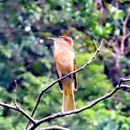 栗背短脚鹎,体长18-22厘米。上体栗褐,头顶和羽冠黑色。背栗色、翅和尾暗褐色具白色或灰白色羽缘。…