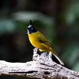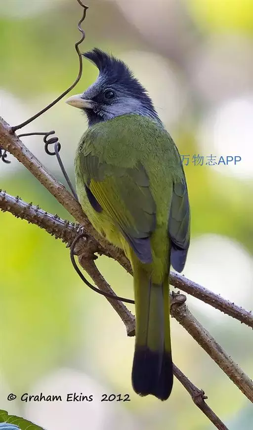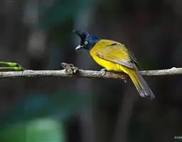 黑冠黄鹎:体长18-21厘米,是一种中等体型偏黄色鹎。整个头、颈、颏、喉黑色,头顶有显著直立的羽冠,…