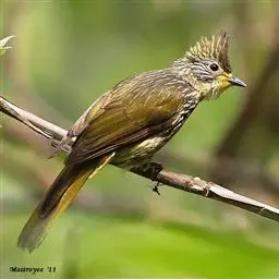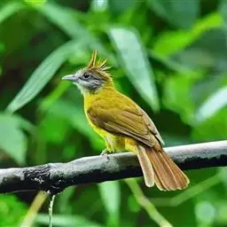纵纹绿鹎,是鹎科鹎属的一种动物,是体型中等大小鸟类,体长20-24厘米。头绿褐色具明显的冠羽,…