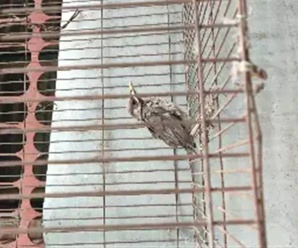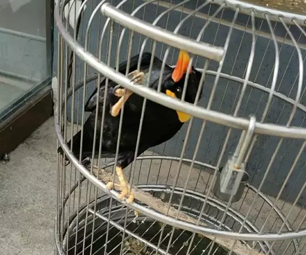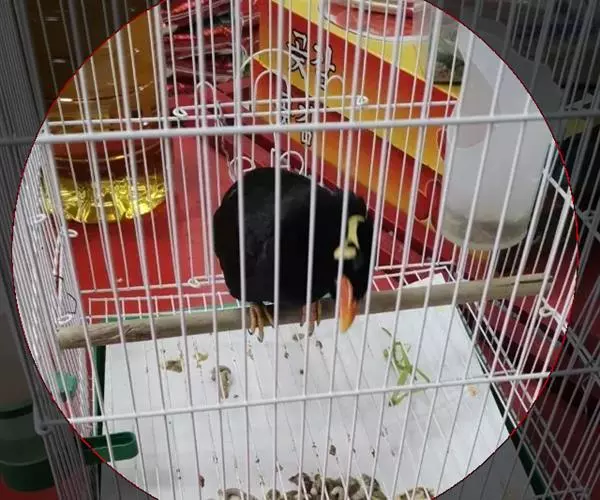 3、挑鹩哥时,用手拍打笼子,不跳,两眼炯炯有神的为好,再捉出来,身上肉不要掉的太多,否则容易夭折,