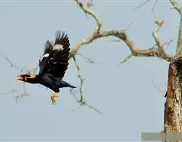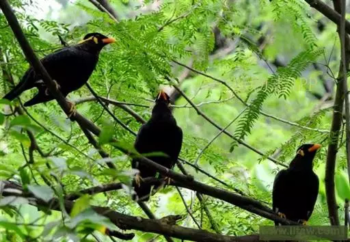 黑冠椋鸟:中等体型的椋鸟,体长21厘米。雄鸟前头为黑色并具金属光泽;头顶、颈项和羽冠亦为黑色;翅及翅上覆羽黑色;尾羽褐色,具白色端斑;上体灰色;下体淡黄褐色。雌鸟形态与雄鸟相似,但羽冠较雄鸟为短。虹膜蓝白或乳黄色;嘴峰铅绿色;跗蹠及爪柠檬黄色。头具黑色羽冠,与其他椋鸟易于区别。主要栖息于开阔落叶阔叶林和灌木林中以及多营巢于树洞中或其他洞穴内。属群鸟共栖。常4-8只结小群活动。鸣声清脆响亮。食物有果实和浆果,偶食花蜜和小型昆虫。分布于印度、中国云南耿马。常见于印度城镇、村庄及铁路沿线。偶见于中国云南西南部和西藏东南部。