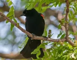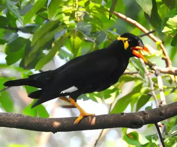 鹩哥(拉丁学名:Gracula religiosa):体形较大,体重165-258克,体长234-304毫米。全身大致为黑色具紫蓝色和铜绿色金属光泽。特征为头侧具桔黄色肉垂及肉裾,雌雄相似。善鸣,叫声响亮清晰,能模仿和发出多种有旋律的音调。