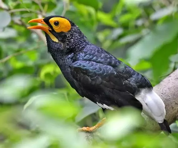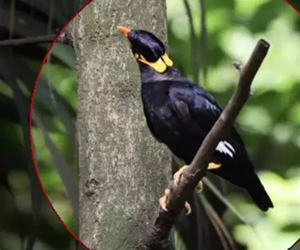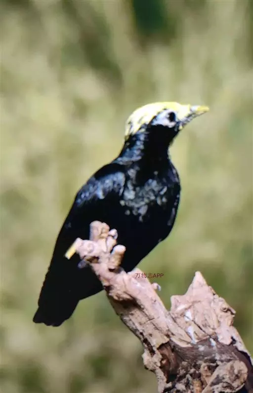 金冠树八哥为椋鸟科树八哥属的鸟类。体长约23厘米,闪辉黑色。特征为具翼斑及颏黄色,脸颊裸露皮肤粉黄色。…