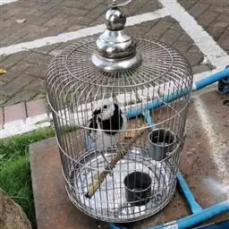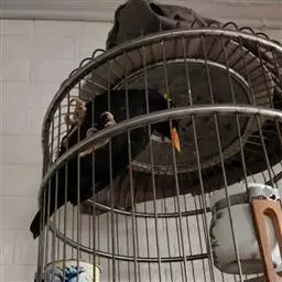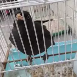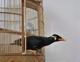 7、鹩哥不应该一直放在笼子里,要让它学会在人手中玩耍,这样就可以向杂技方向发展,而且可以锻炼它过笼的能力,换洗澡笼也方便。