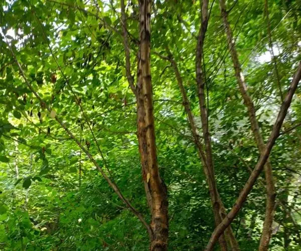 亮叶桦是桦木科桦木属的高大乔木植物。株高可达25米;树皮光滑;幼枝密被黄色柔毛及稀疏树脂腺体;叶卵状椭圆形、长圆形或长圆状披针形,先端渐尖或尾尖,基部圆、近心形或宽楔形,幼时密被柔毛,下面密被树脂腺点,具不规则刺毛状重锯齿,叶柄密被长柔毛及树脂腺体;雌花序单生,细长圆柱形,密被柔毛及树脂腺体;果苞中裂片长圆形或披针形,小坚果倒卵形,疏被柔毛;花期3月下旬至4月上旬;果期5月至6月上旬。亮叶桦分布于中国云南、贵州、四川、陕西、甘肃、湖北、江西、浙江、广东、广西等省地,常生于海拔500-2500米之阳坡杂木林内。其喜温暖湿润的气候环境,较耐阴、耐干燥贫瘠,适宜在深厚肥沃、光照充足的酸性沙壤土上生长。繁殖方式一般为种子繁殖。亮叶桦的根、皮、叶都可入药,味甘、辛,性凉,归肾、胃、心、膀胱经,具有清热利尿、解毒、祛湿散寒、消滞中和等功效,可用