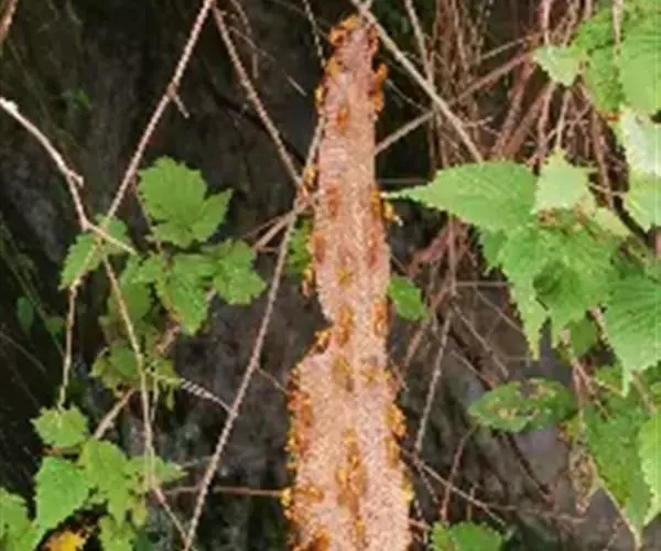 雄花序圆柱形,长3-8厘米,直径3-7毫米,无梗;苞鳞紫红色,仅边缘具纤毛。