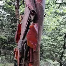 红桦(学名:Betula albosinensis Burk.)是桦木科 ,桦木属大乔木,高可达30米;树皮淡红褐色或紫红色,小枝紫红色,叶片卵形或卵状矩圆形,顶端渐尖,上面深绿色,下面淡绿色,雄花序圆柱形,无梗;苞鳞紫红色,果序圆柱形,序梗纤细,果苞中裂片矩圆形或披针形,侧裂片近圆形,小坚果卵形,膜质翅宽。