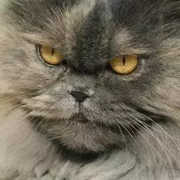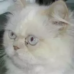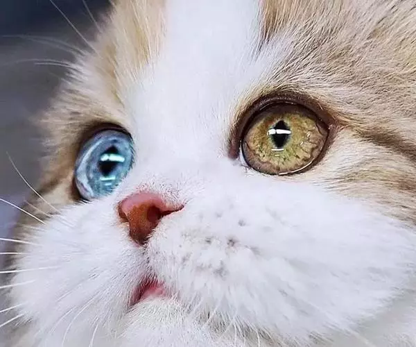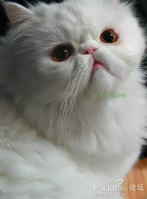眼睛大且圆,眼色亮泽,双眼间距宽阔;(波斯猫瞳色为蓝色与琥珀色的一般为纯种波斯猫)