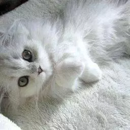 驯养猫的历史要比犬晚得多。这一时期可能不会早于公元前七千年, 纯白长毛波斯猫 当时由于农业得兴旺发达,在中东形成了“新月形米粮仓”地带。家宅、谷仓和粮食商店的出现为鼠类及其他小型哺乳类动物提供了新的生存环境,而这些动物正好是小型野猫的理想猎物。从一开始,人与猫之间就建立起互利关系:猫获得了丰富的食物来源,而人类免除了讨厌的啮齿动物的困扰。最初,这些野猫的存在可能不被人类所接受甚至受到鼓励,不时抛给一些食物。就象狼一样,较为驯服的一些野猫逐渐被吸纳进入人类社会,由此产生了最早的半驯化猫群体。家猫几乎肯定是遍布于欧洲、非洲和南亚的小型野猫的后裔。在这片广袤的地域内,根据当地的环境和气候条件,演变出无数个野猫亚种群。它们的外观不尽相同,生活在北方的欧洲野猫身材粗壮,短耳,厚皮毛;非洲野猫的身材更修长,长耳,长腿;而生活在南方的亚洲野猫则身材小巧,身上带斑点。