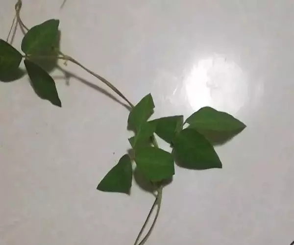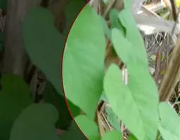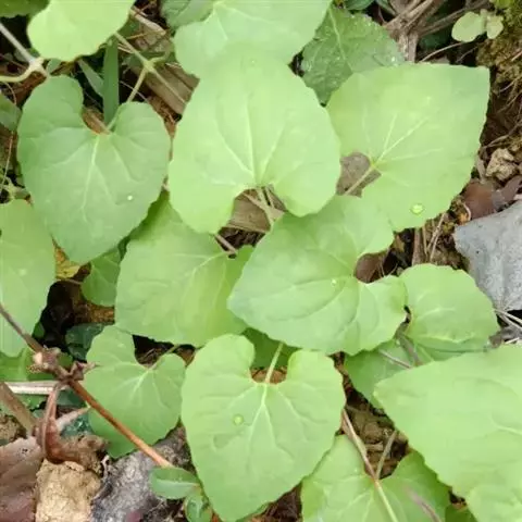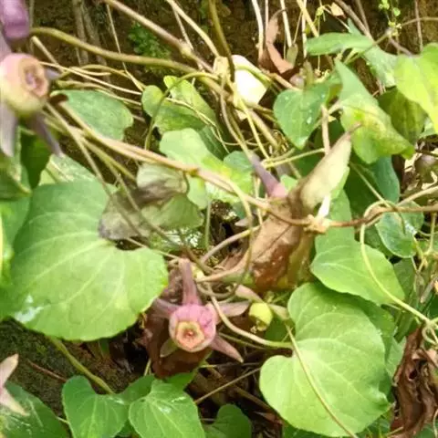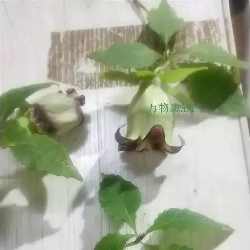 羊乳花 植株全体光滑无毛或茎叶偶疏生柔毛。茎基略近于圆锥状或圆柱状,表面有多数瘤状茎痕,根常肥大呈纺锤状而有少数细小侧根,长约10-20厘米,直径1-6厘米,表面灰黄色,近上部有稀疏环纹,而下部则疏生横长皮孔。茎缠绕,长约1米,直径3-4毫米,常有多数短细分枝,黄绿而微带紫色。叶在主茎上的互生,披针形或菱状狭卵形,细小,长0.8-1.4厘米,宽3-7毫米;在小枝顶端通常2-4叶簇生,而近于对生或轮生状,叶柄短小,长1-5毫米,叶片菱状卵形、狭卵形或椭圆形,长3-10厘米,宽1.3-4.5厘米,顶端尖或钝,基部渐狭,通常全缘或有疏波状锯齿,上面绿色,下面灰绿色,叶脉明显。花单生或对生于小枝顶端;花梗长1-9厘米;花萼贴生至子房中部,筒部半球状,裂片湾缺尖狭,或开花后渐变宽钝,裂片卵状三角形,长1.3-3厘米,宽0.5-1厘米,端尖,全缘;花冠阔钟状,长2-4厘米,直径2-3.5厘米,浅裂,裂片三角状,反卷,长约0.5-1厘米,黄绿色或乳白色内有紫色斑;花盘肉质,深绿色;花丝钻状,基部微扩大,长约4-6毫米,花药3-5毫米;子房下位。蒴果下部半球状,上部有喙,直径约2-2.5厘米。种子多数,卵形,有翼,细小,棕色。花果期7-8月。