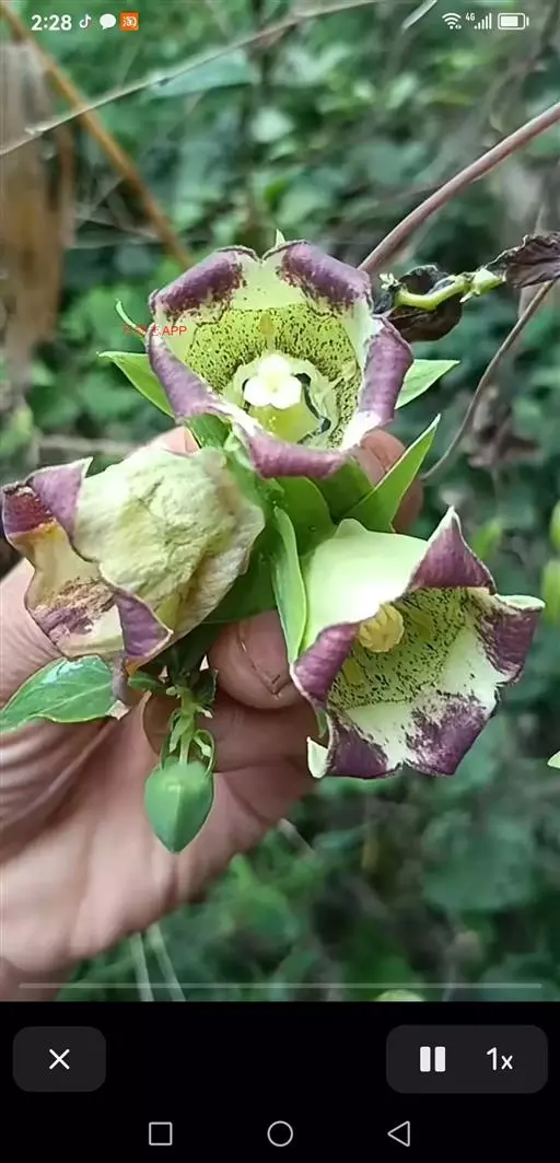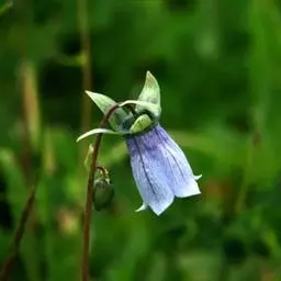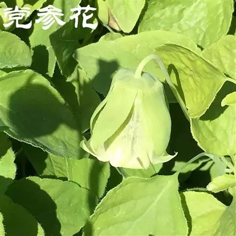 羊乳花,是多年生缠绕藤本。分布于中国东北、华北、华东和中南各省,生长在山坡灌木林下阴湿地区。多年生缠绕草本,根粗壮肥大,倒卵状纺锤形,茎圆形,着生于茎上的叶较小,互生,有短柄。花通常一朵生于枝端;花萼5裂,萼筒与子房结合;花冠蓝绿色或淡黄色,钟状,雄蕊5枝,花丝基部稍膨大;子房下位,3室;花柱短,柱头3裂。蒴果圆锥形。