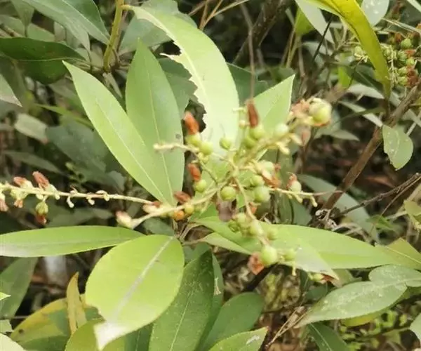 叶革质,披针形至长圆形,稀倒披针形,先端渐尖或锐尖,边缘具细锯齿,基部楔形至钝圆形,表面深绿色,背面淡绿色,中脉显著,幼时在表面微被柔毛,老时脱落,侧脉在表面下陷,在背面不明显;花期5-6月,果期7-9月。 产浙江、江西、湖北、湖南、广东、广西、四川、贵州、云南等省区。生于海拔900-2300 米的灌丛中。越南、缅甸、尼泊尔、不丹、印度也有。