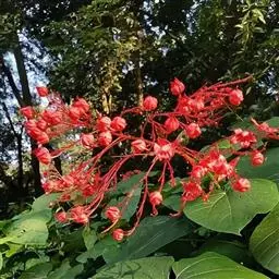 红萼龙吐珠马鞭草科大青属常绿木质藤本。叶对生,纸质,具柄,卵状椭圆形,全缘,先端渐尖,基部近圆形。…