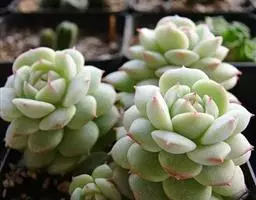 紫珍珠是景天科石莲花属的多年生肉质草本植物。植株中小型;叶片肉质,匙形,呈莲座状紧密排列;叶片粉紫色,…