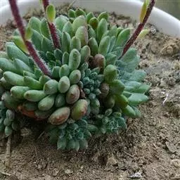 绿玉菊为菊科千里光属多年生肉质植物。植株匍匐或悬垂、向上攀援生长,茎圆柱形,红褐色,叶互生,具叶柄,…