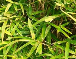 凤尾竹 Raeusch. ex Schult. ’Fernleaf’ R. A. Young)是禾本科,簕竹属孝顺竹的变种。植株较高大,杆高可达6米,竿中空,小枝稍下弯,下部挺直,绿色;竿壁稍薄;节处稍隆起,无毛;叶鞘无毛,纵肋稍隆起,背部具脊;叶耳肾形,边缘具波曲状细长繸毛;叶舌圆拱形,叶片线形,上表面无毛,下表面粉绿而密被短柔毛,小穗含小花,中间小花为两性;外稃两侧稍不对称,长圆状披针形,先端急尖;内稃线形,脊上被短纤毛,花药紫色,子房卵球形,羽毛状。成熟颖果未见。原产中国,华东、华南、西南以至台湾、香港均有栽培。凤尾竹喜温暖、湿润和阳光充足的环境,耐寒。宜土层深厚、肥沃、疏松的微酸性壤土。该种观赏价值较高,宜作庭院丛栽,也可作盆景植物。全草或根入药,味淡、微苦,性寒,有清热利湿、凉血止血、消肿解毒功效,可治痢疾、泄泻等多种病症。凤尾