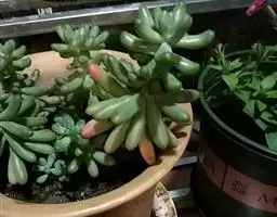 灯美人是景天科的园艺品种,多肉植物。叶片近柱状,丛生,在日照时间长、温差大的环境下会呈现橙粉色。