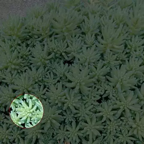 薄雪万年草别名矶小松,景天科景天属多年生草本植物,其细小的蓝绿色棒状叶片环绕生长于茎端,…