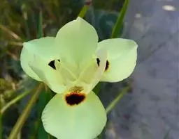 双色野鸢尾为多年生草本植物,叶子呈剑状淡绿色。…