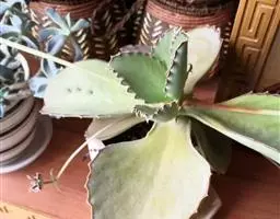 棒叶落地生根是景天科、落地生根属植物。茎直立、粉褐色。叶圆棒形,上表面有沟、粉色,有红褐斑。…