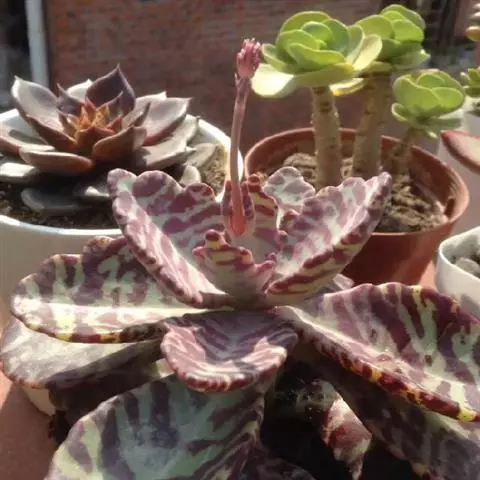 江户紫,景天科伽蓝菜属草本植物,是多年生草本花卉。花白色,但栽培中很少能见到花,常作观叶植物栽培。…