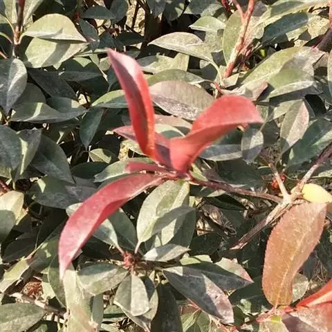 红叶石楠 是蔷薇科,石楠属杂交种,为常绿小乔木或灌木,乔木高可达5米、灌木高可达2米。叶片革质,…