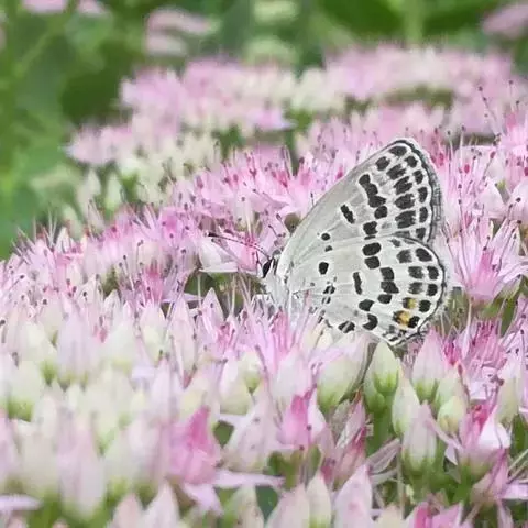 点玄灰蝶很小,它的卵更小,只有那么0.4毫米大小,扁平的只有0.2毫米厚。点玄灰蝶的卵孵化了,出来一条1毫米长,0.16毫米左右直径的小虫子。这小家伙出来之后马上钻进寄主景天科植物的叶肉里。