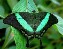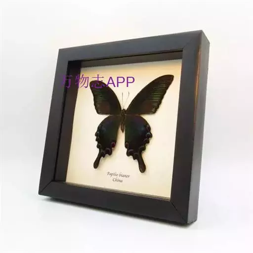 天堂凤蝶翅展可达105mm。前、后翅自基角至后缘约1/2~2/3端为纯净的宝蓝色,后角至后缘1/3…