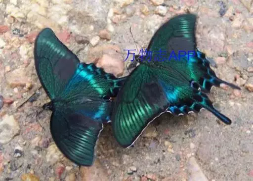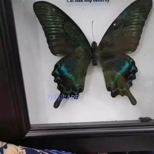 巴黎翠凤蝶中型凤蝶,躯体黑褐色,散布绿色亮鳞。后翅M3脉端有一明显叶状尾突。翅背面底色黑褐色,密布…