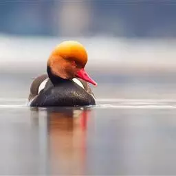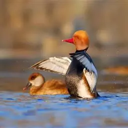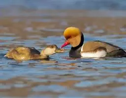 赤嘴潜鸭俗称大红头,是大型鸭类,个体比绿头鸭小,体长45-55厘米,体重1千克左右。雄鸟头浓栗色,…