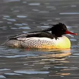中华秋沙鸭(学名:Mergus squamatus)为鸭科秋沙鸭属的鸟类,俗名鳞胁秋沙鸭,是中国的特有物种。嘴形侧扁,前端尖出,与鸭科其它种类具有平扁的喙形不同。嘴和腿脚红色。雄鸭头部和上背黑色下背、腰部和尾上覆羽白色;翅上有白色翼镜;头顶的长羽后伸成双冠状。胁羽上有黑色鱼鳞状斑纹。