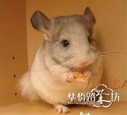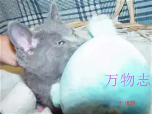 毛丝鼠 短尾毛丝鼠体型较大,体长30~38cm,尾长10cm左右;长尾毛丝鼠体型较小,体长24~28cm,尾长14~15cm。现在各国饲养的几乎都是长尾毛丝鼠。毛丝鼠外形似具长尾的兔,但耳较兔小,呈钝圆形;前肢短小,有5趾,不善于刨挖,却善于巧妙地摆弄;后肢发达,有4趾,善于跳跃;尾长而蓬松似松鼠。成年雌鼠大于雄鼠,一般雌鼠体重510~710g,雄鼠体重425~570g。仔鼠出生重44.83±6.69g。