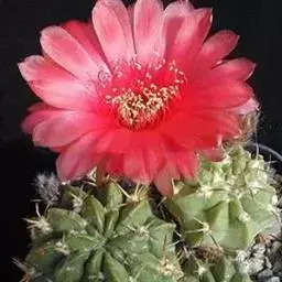绯花玉 Speg.)是仙人掌科、裸萼球属多肉植物,植株呈扁球形,表皮墨绿色,刺针状,…