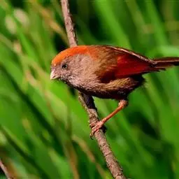 棕头鸦雀(学名:Paradoxornis webbianus)一种全长约12厘米。头顶至上背棕红色,上体余部橄榄褐色,翅红棕色,尾暗褐色。喉、胸粉红色,下体余部淡黄褐色的鸟类。常栖息于中海拔的灌丛及林缘地带,分布于自东北至西南一线向东的广大地区,为较常见的留鸟。