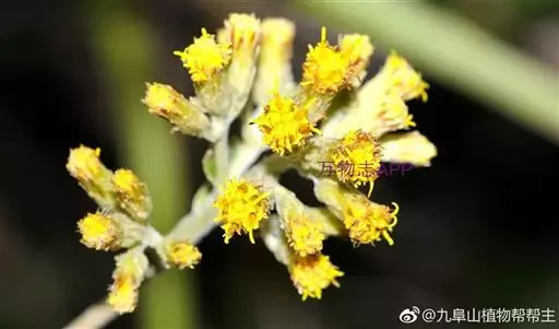 头状花序倒卵圆形,宽5-8毫米,多数密集于茎和枝端成聚伞圆锥花序;被绢状密茸毛。有线形的苞叶。总苞近钟形,长5-7毫米;总苞片约5层,线状披针形,外层较内层短3-4倍,顶端稍尖,外面被污白色或带褐色绢状茸毛。小花长4-5.5毫米;边缘的小花舌片短小,有3-4裂片,或无舌片而有4个退化雄蕊;中央的小花管状,上部有三角卵圆形裂片;冠毛污白色,约与管状花花冠同长,具20余个糙毛。