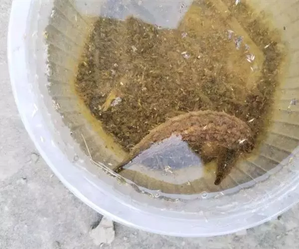 ⑷加强海参养殖观察和记录,发现海参少量发病时,及时将病参挑选出来,进行药物浸泡,避免病害蔓延;