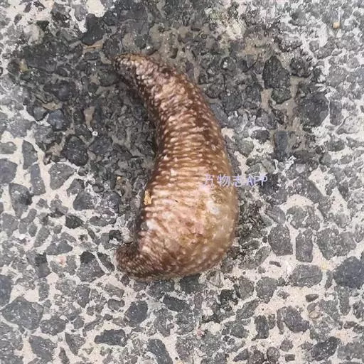 形态特征和地理分布:体近圆形,长约30厘米。背腹面区别很明显,背面散生一些不规则的小疣足,腹面管足排成三纵带。口偏于腹面周围,具小触手20个,肛周围有5个石灰质的小齿。干制品全体为黑褐色,有明显的皱纹。我国分布于南海的西沙群岛。
