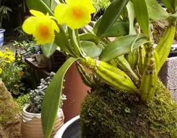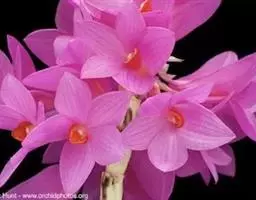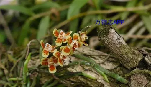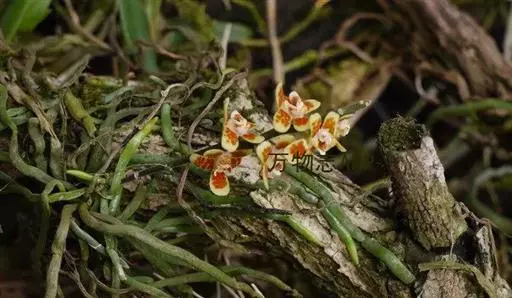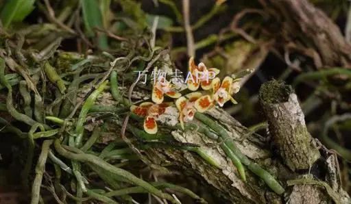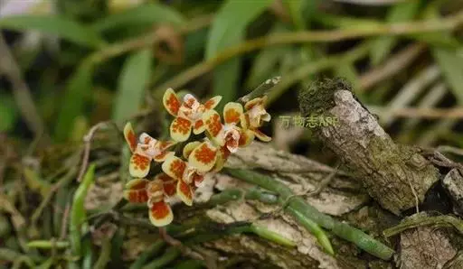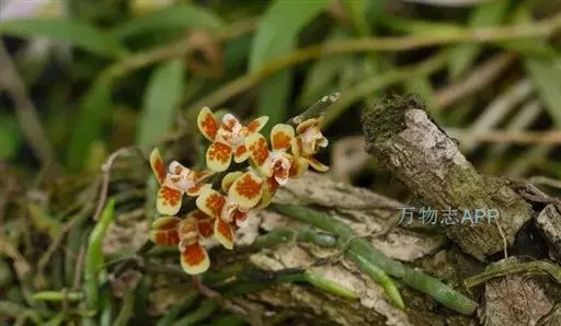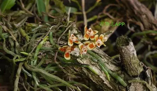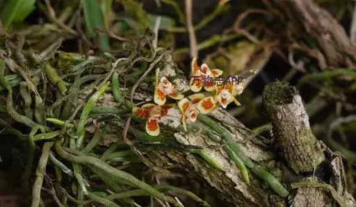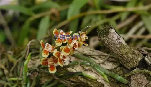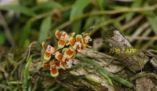 异型兰(学名:Chiloschista yunnanensis Schltr.):茎不明显,通常无叶,至少在花期时无叶。花序1-2个,下垂,不分枝,疏生多数花;花苞片膜质,卵状披针形,长3-4毫米,先端短急尖,具1条脉,背面疏生短硬毛;花质地稍厚,萼片和花瓣茶色或淡褐色,除基部外周边为浅白色,具5条脉,背面密布短毛;唇瓣黄色,贴生于蕊柱足末端,3裂。蒴果圆柱形,稍弧形弯曲。花期3-5月,果期7月。