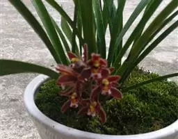 上盆(或翻盆)时间一般在春季3-4月或秋季10-11月。花盆以口小、盆深、底孔大的为佳。新从山上挖来的野生苗需理植于瓦盆(泥盆)中,这样兰花泥易干,通气性好.容易发根;2-3年后方可换人紫砂盆或瓷盆。兰花种植(在盆中)的方法与一般花卉不同,尤其是名种兰花,翻种移盆必须洗根。方法足将根浸入清水中,用旧牙刷或毛笔轻轻洗刷,切勿用力过大伤根;用剪刀将残叶、黄叶、断裂根、发黑腐烂根剪去,注意勿伤幼芽。然后将处理好的植株放在阴凉通风处晾干,待根部发白并显细小皱纹柔软时,再植入盆中。 方法一 准备好兰盆及植料后,将兰株倒拿(根在上,叶在下)放于水龙头下以慢水冲洗,但水压切忌过强,以免伤兰根及叶子。用拇指和食指抓住兰头,小指抵住盆缘,用竹筷将根固定,当放入盆内时,尽量不要让根接触到盆壁。将豆粒大的混合石砾倒入盆底至三分之一处。然后倒入中粒植料至五分之四处,填实和尽量不要留下空间。将竹筷拔出,并摇实盆中植料。填实植料后,再用大粒植料埴入至距盆缘1.5厘米处。最后再倒入豆粒大植料,以将假鳞茎全部埋入土中为度,然后充分摇实。用压土工具轻压植料,并将表面弄平。种植完毕后,植料在盆中以中央稍高为好。 方法二 要注意盆底排水,泥盆用碎瓦填,紫砂盆必须用穿孔尼龙纱罩住盆底。植前先在盆内铺上粗石子,占盆深2/5左右,粗石培养土,厚3-5厘米,然后放入兰草。上盆时注意根部要自展,不能卷曲。种植名种兰草时一定要将老草靠边,新草放在中心,这样再发新草就有余地。种植时,左手握持兰草,右手加泥(要防止泥土贯入叶心),再将兰株稍稍提起,使根自然舒展。然后边加土边摇盆,使土与根紧密接触。再用手将茎部四周的泥土按紧,最后使盆面略显馒头状(即中间四周略低)。上面铺覆一层青苔或细石子,这样盆土不易板结并可减少水分蒸发。上完盆,立即浇水。第一次浇水水量要充足。最后将兰盆放置阴处。一个月内不宜直接晒太阳,并控制浇水,不宜太湿,以后放置地点宣选择在半阴半阳、通风透气,早上照到太阳的地方。