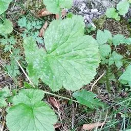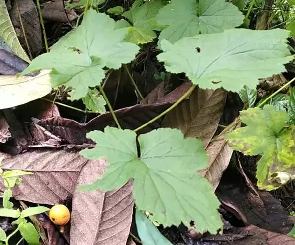 基生叶2-5,有长柄;叶片心状卵形或心状宽卵形,长(5.2-)11-22厘米,宽(6-)12-26厘米,顶端急尖3-5浅裂,边缘有小牙齿,表面疏被短糙毛,背面密被白色短绒毛;叶柄长(6.5-)25-60厘米,有柔毛。