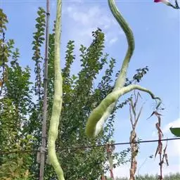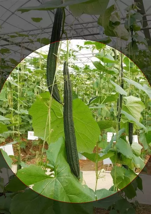 果实圆柱状或棍棒状,具8-10条纵向的锐棱和沟,没有瘤状凸起,无毛,长15-30厘米,径6-10厘米。种子卵形,黑色,有网状纹饰,无狭翼状边缘,基部2浅裂,长11-12毫米,宽7-8毫米,厚约1.5毫米。花果期:夏、秋季。