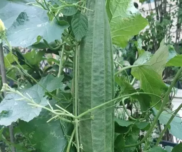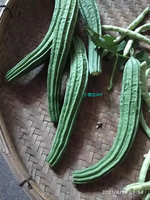 广东丝瓜(Luffa acutangula (L.) Roem.)葫芦科一年生草质攀援藤本;茎稍粗壮,具明显的棱角,被短柔毛。卷须粗壮,下部具棱,常3歧,有短柔毛。叶柄粗壮,棱上具柔毛;叶片近圆形,膜质,中间裂片稍长,上面深绿色,粗糙,下面苍绿色。雌雄同株;总花梗有白色短柔毛;花萼筒钟形,外面有短柔毛;花冠黄色,辐状,裂片倒心形,顶端凹陷,两面近无毛,外面具3条隆起脉,脉上有短柔毛;雄蕊3,离生,1枚1室,2枚2室,花丝基部有髯毛,花药有短柔毛。雌花:单生。果实圆柱状或棍棒状,无毛。种子卵形,黑色,有网状纹饰,无狭翼状边缘,基部2浅裂。花果期:夏、秋季。